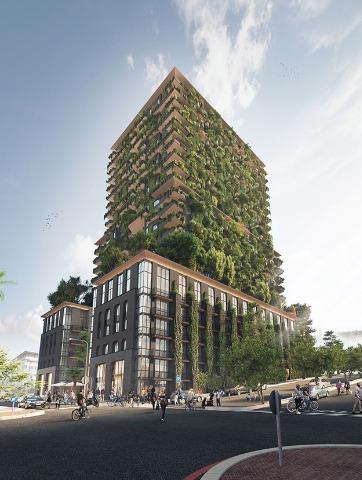 This first-of-its-kind building, situated at 142 Bree Street, will feature 689 apartments, and includes a rooftop sunset terrace with lap pool and co-working space, a rooftop fitness centre, as well as a ground-floor plant-based restaurant, a tearoom, and a botanical bar.