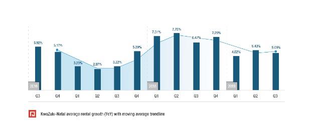 Provincial data shows that KwaZulu-Natal still experienced growth of around 5% last year – down from the 7% seen in 2018, but still higher than the national average. In contrast to a picture of nationwide declines, rent increases in KwaZulu-Natal rose through 2017 and much of 2018, but while growth in the province exceeded the national average, it did not escape last year’s trend of flat growth.