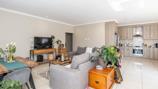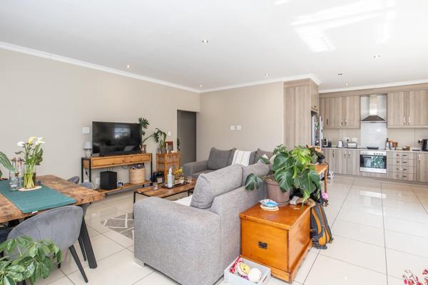 Open plan living area with fireplace and recently renovated kitchen with scullery and ample cupboard space