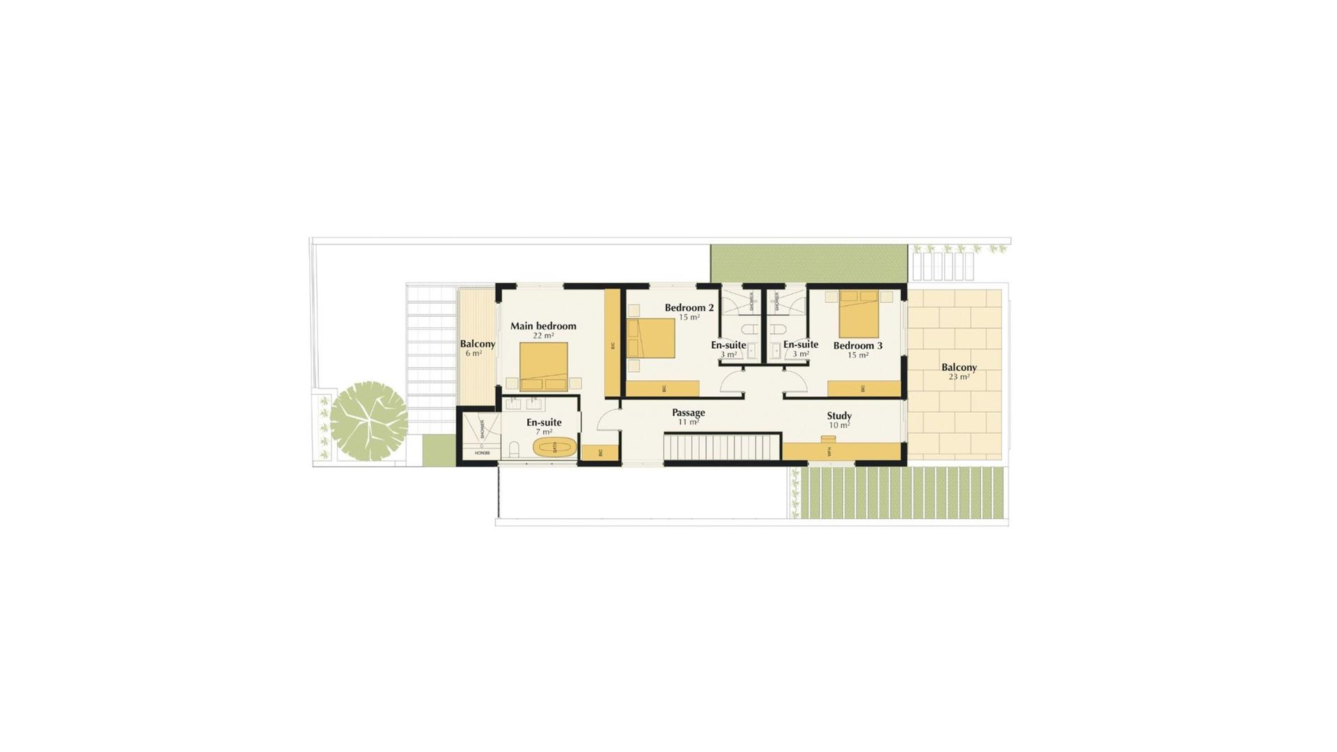 At The Meadows, each three-bedroom home embodies a commitment to quality and comfort, distributed over two levels with a seamless open-plan kitchen and living area leading to an inviting outdoor entertainment and braai zone. Upstairs, tranquility reigns in the sleeping quarters, complete with options for a study or pyjama lounge. The luxurious master suite features a sizeable ensuite bathroom. The interior design merges modern aesthetics with timeless elegance. From the sleek kitchen to optional upgrades like engineered wood flooring and air conditioning, each home offers a canvas for individual expression.